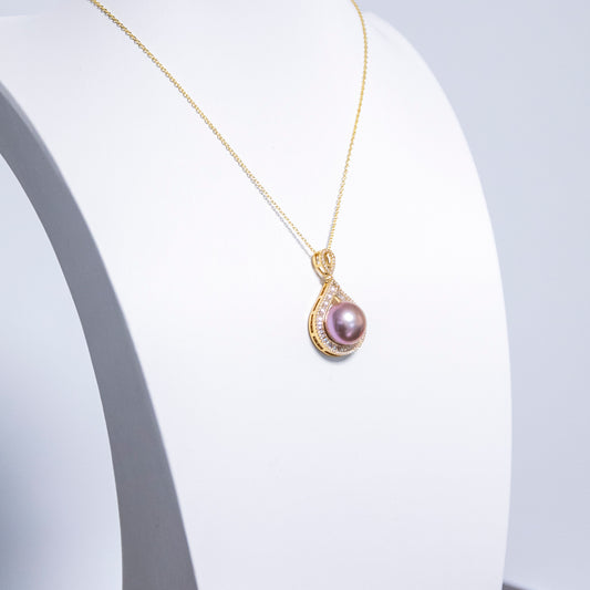Large Size 15mm AAAA Purple Pearl on Water Drop Zircon Necklace