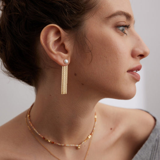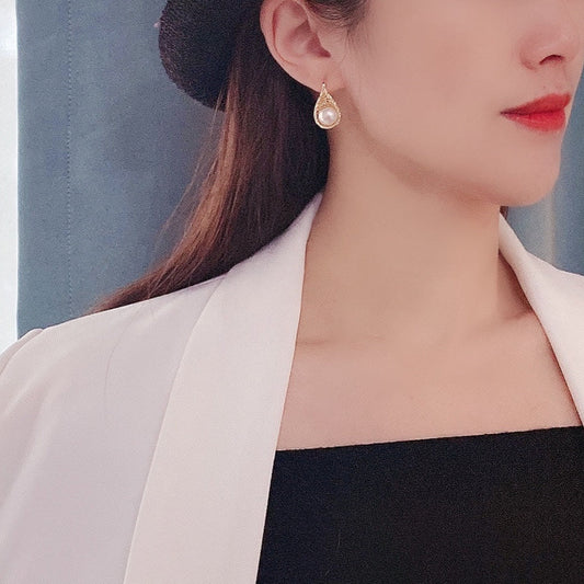 Shiny Dual Square Zircon Freshwater Pearl Earrings
