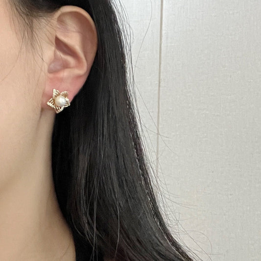 Bird Nest Braided Freshwater Pearl Stud Earrings