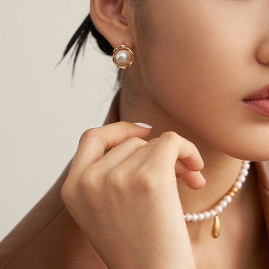 [Simpearl Signature] 6-8mm AAA+ Freshwater Akoya Pearl Stud Earrings