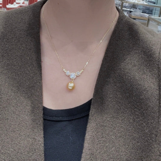 Luxurious Queen Zircon Natural Gold Yellow Pearl Necklace AAA 12-13mm