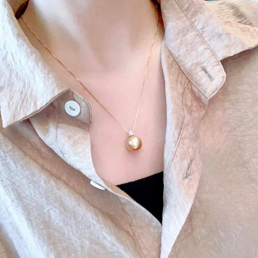Minimalism Design AAAA Golden Iridescent High-Luster Pearl Necklace