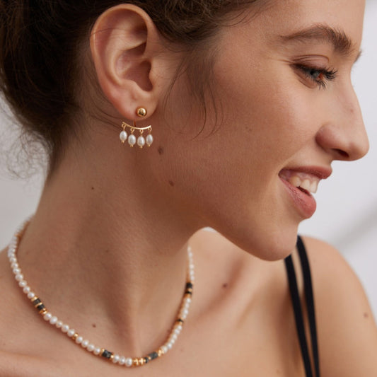 Minimalist Twisted Earings with Detachable Pearls-18kGold on Silver
