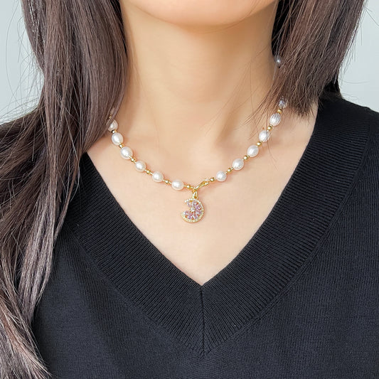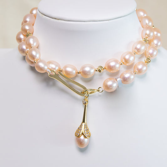 Pink Moon Oval Pearl Necklace