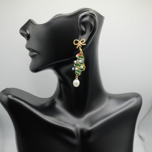 Christmas Tree Pearl Ear Drops
