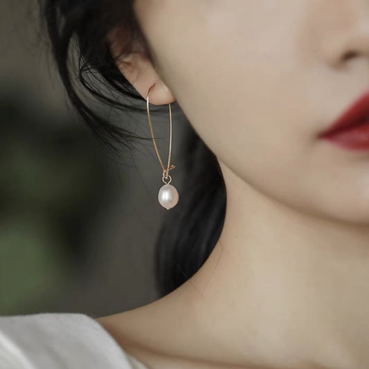 Pearl dangle on Large Hoops Earrings