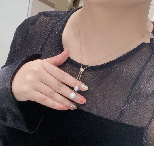 [Simpearl Signature] Sister Double Pearl Necklace- AAA 8-10mm Freshwater (18k gold)