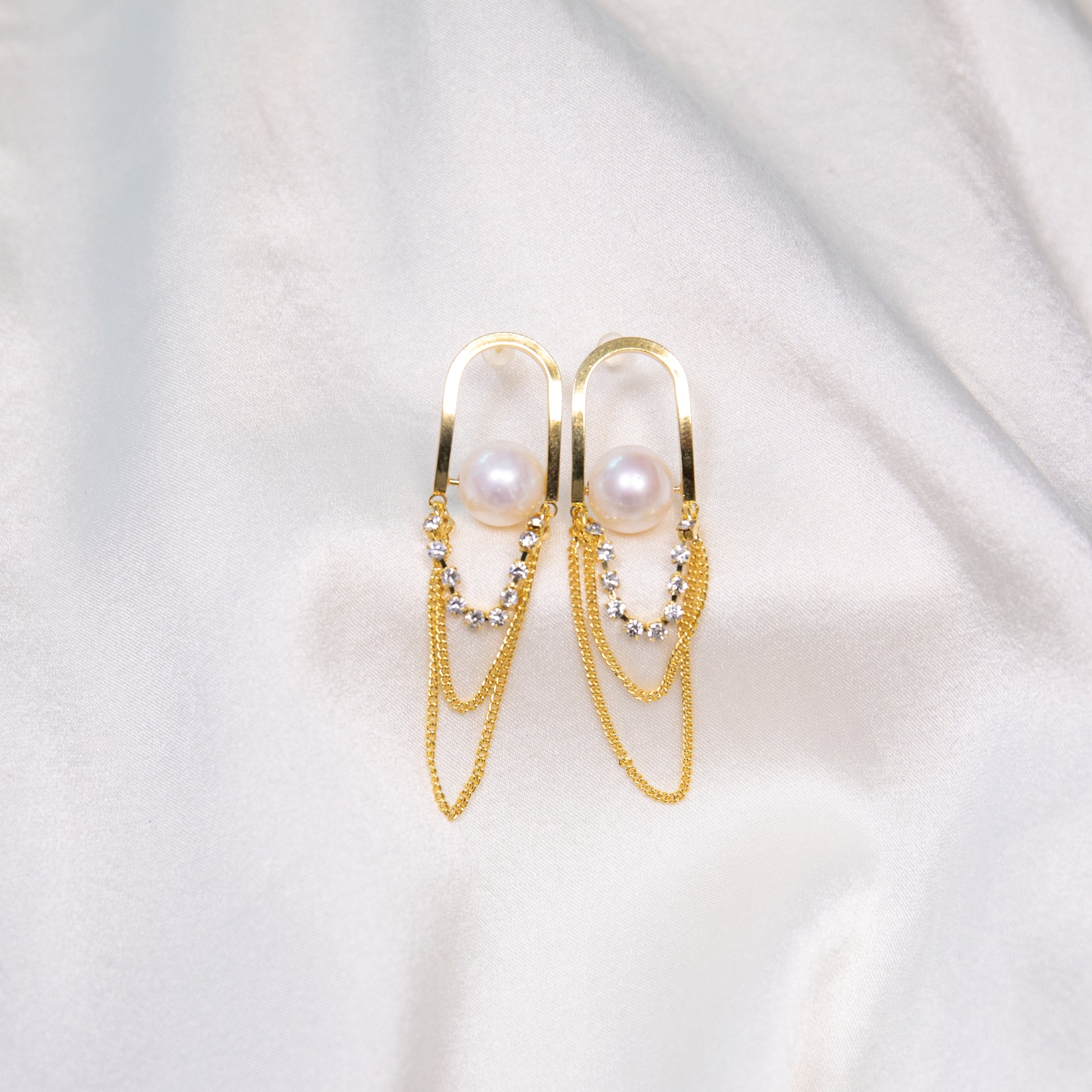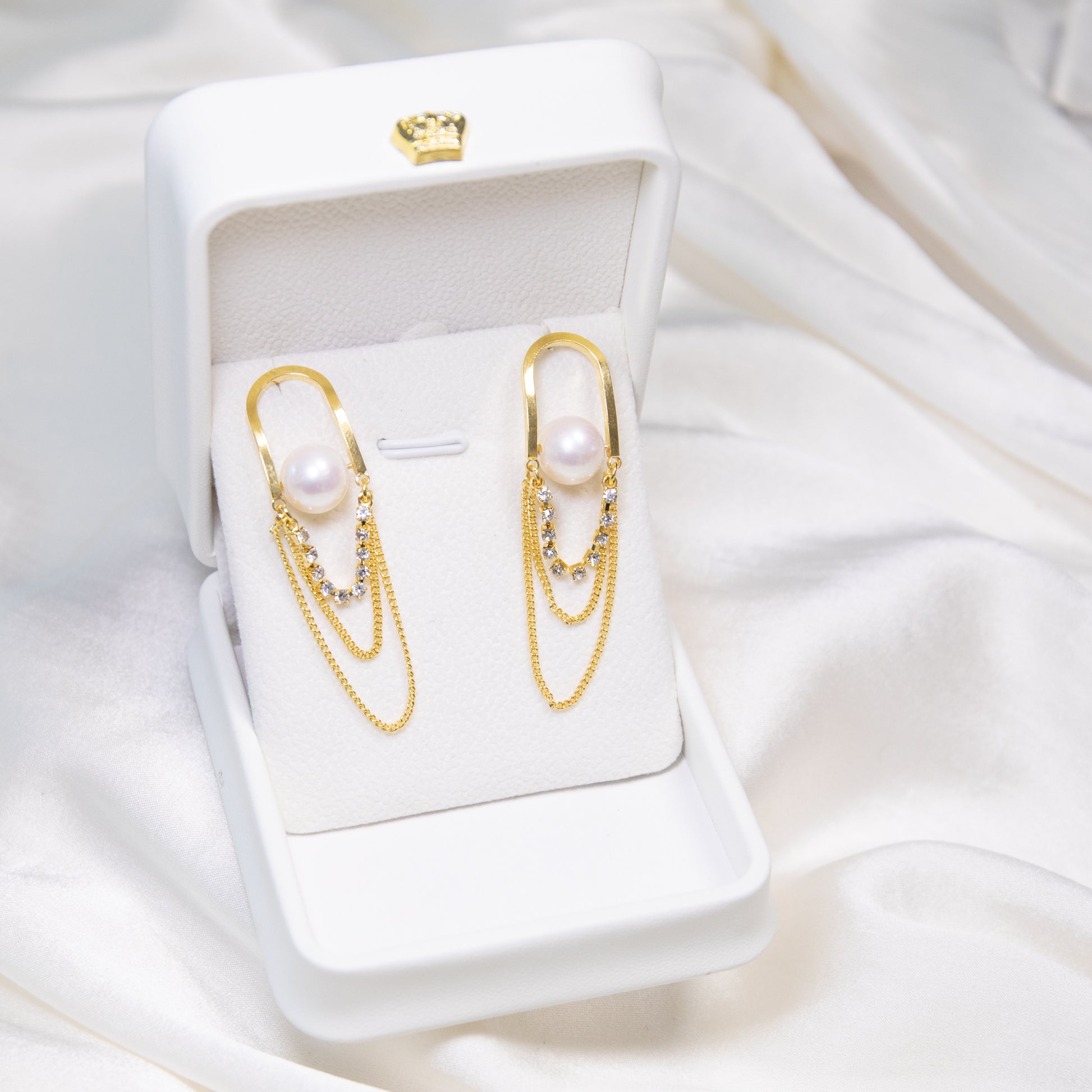 Modern tassel in combination with pearls will make you stand out as a fashionista. Special paper clip shape is decorated with zircons on tassel. Wearing pearls in a chic way.