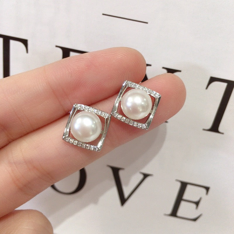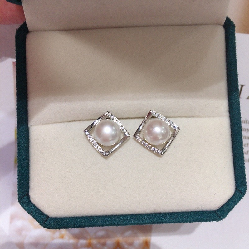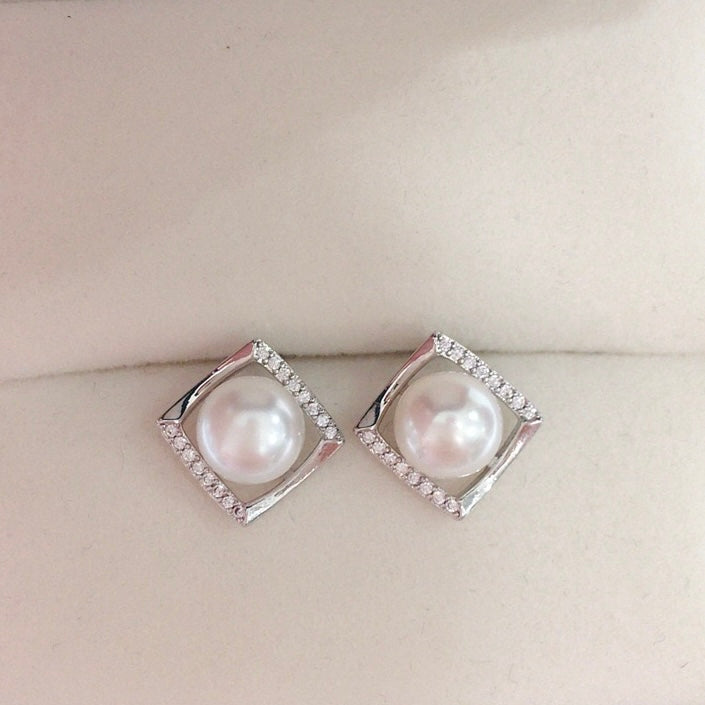 Simple Square Zircon Freshwater Pearl Earrings