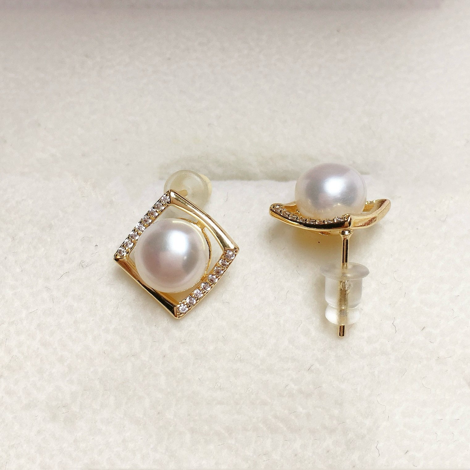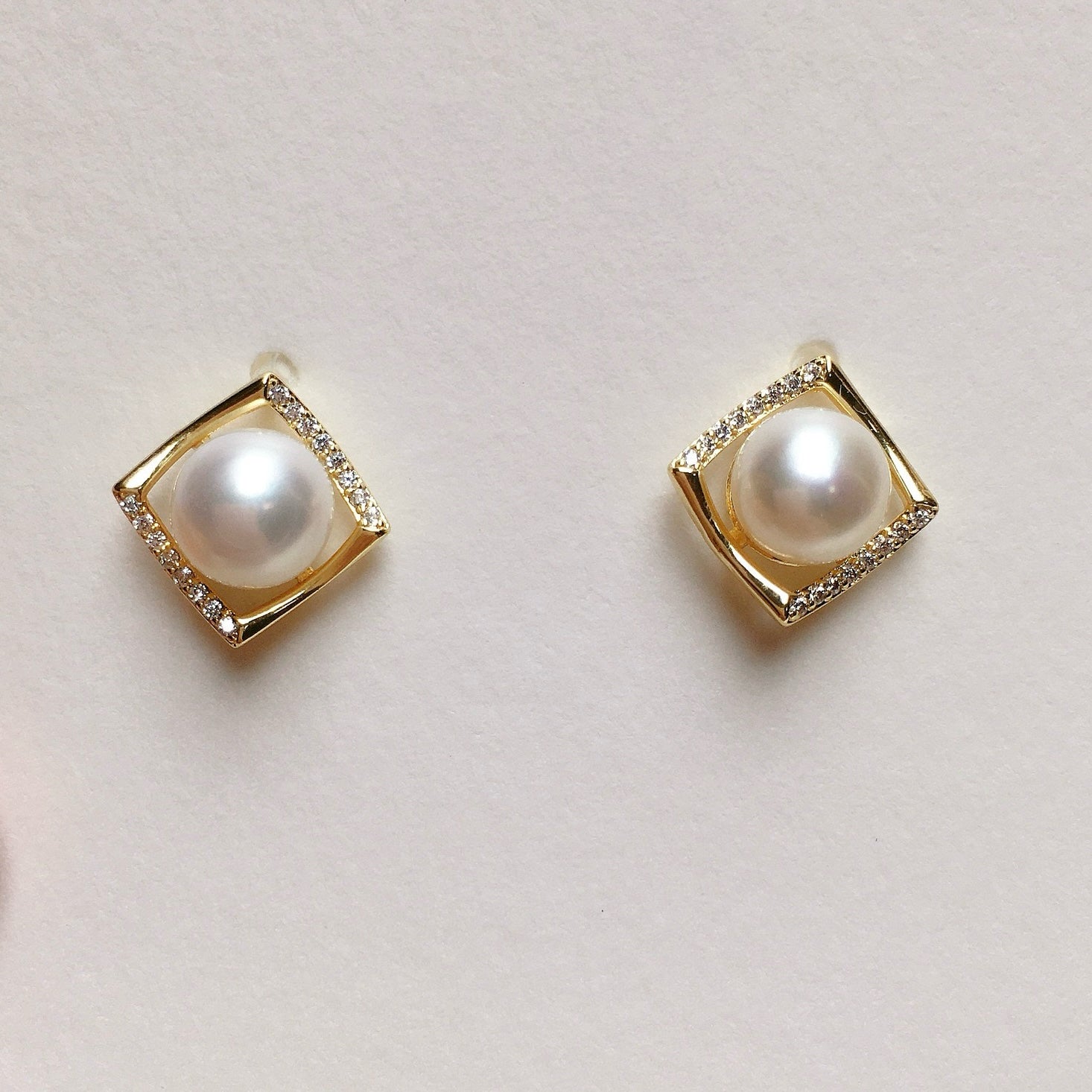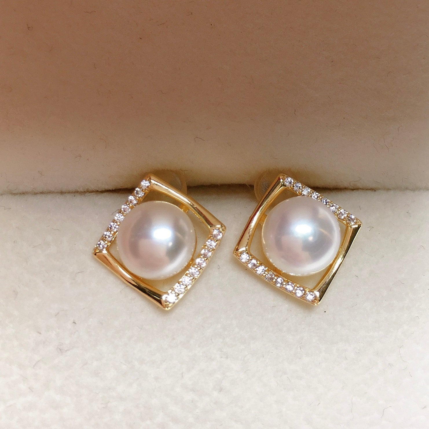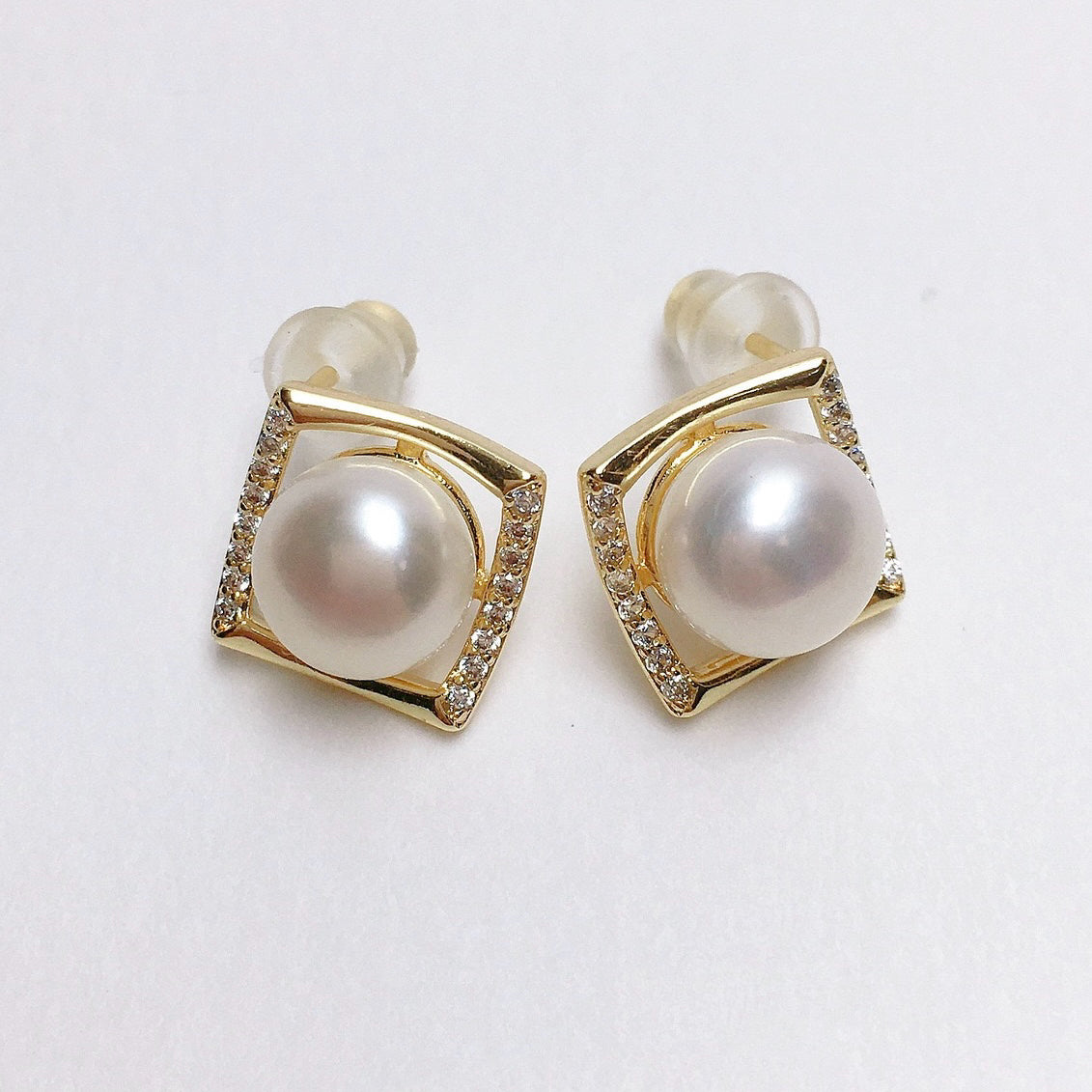 Minimalist Elegance. These chic earrings showcase lustrous freshwater pearls, framed by subtle square zircons for a touch of sparkle. Perfect for everyday sophistication.